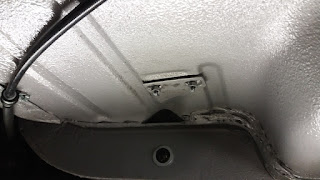 Next I mounted the retainers in the correct way to the floor and put some sealer between the plates and the floor. The retainers and the floor on the inside were painted black.